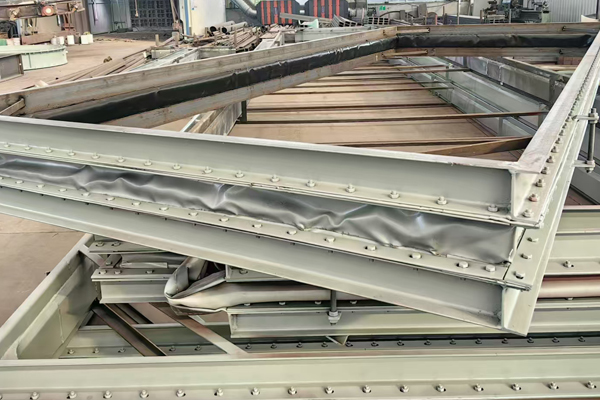 本文中所展示的圖片是我們翔盛環(huán)??萍脊窘谡跒樯綎|客戶生產(chǎn)制作的一批矩形非金屬補(bǔ)償器(矩形非金屬膨脹節(jié))。非金屬補(bǔ)償器通常由纖維織物蒙皮(硅膠為紅色、氟膠為黑色)與管道接口形狀相同的金屬框架、以及其它的結(jié)構(gòu)件所組成。